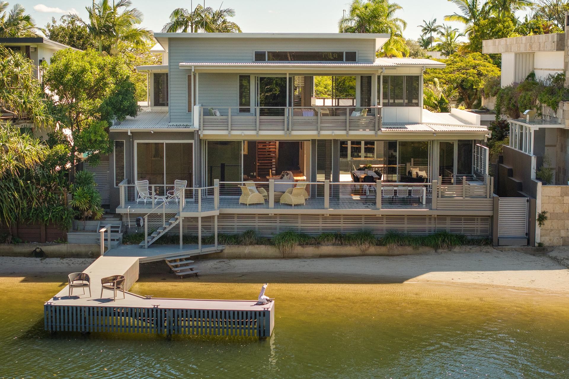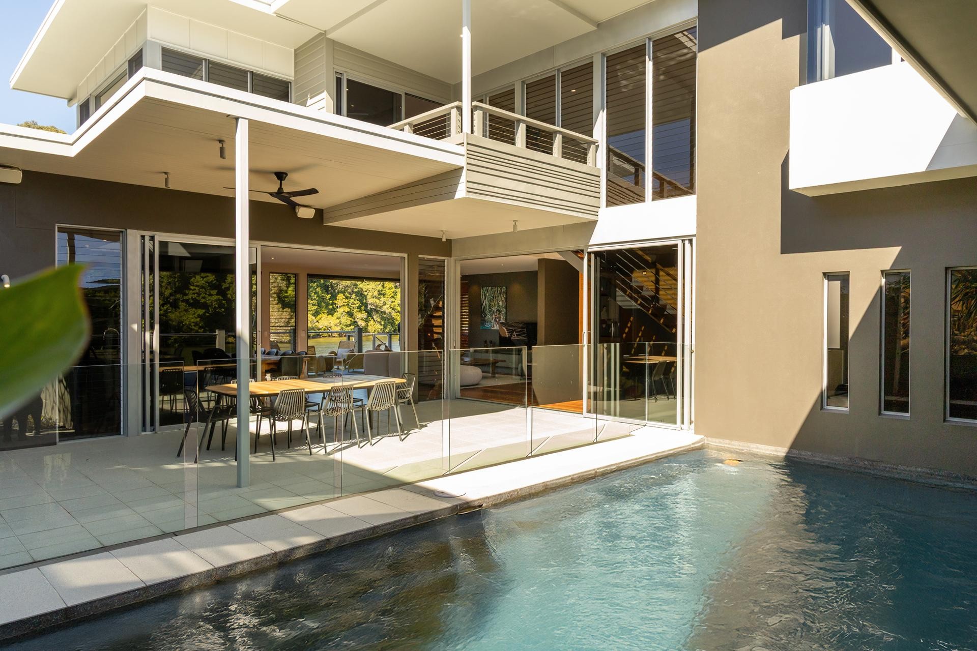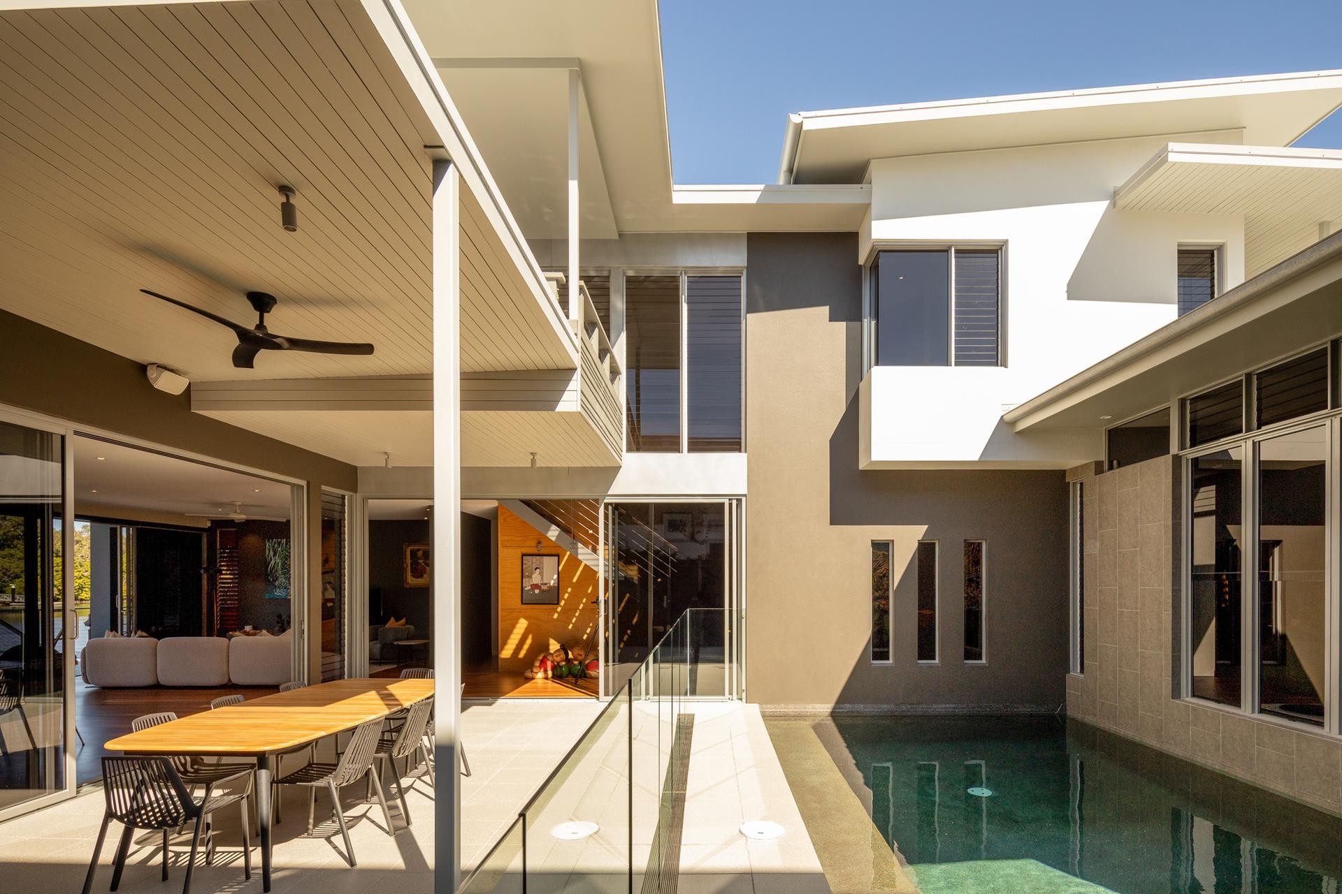 Designed to embrace the outdoors, the home is centered around a private internal pool, allowing water views from every major living space. Expansive open-plan interiors flow effortlessly to a generous waterfront entertaining deck, perfect for relaxing or hosting in style.