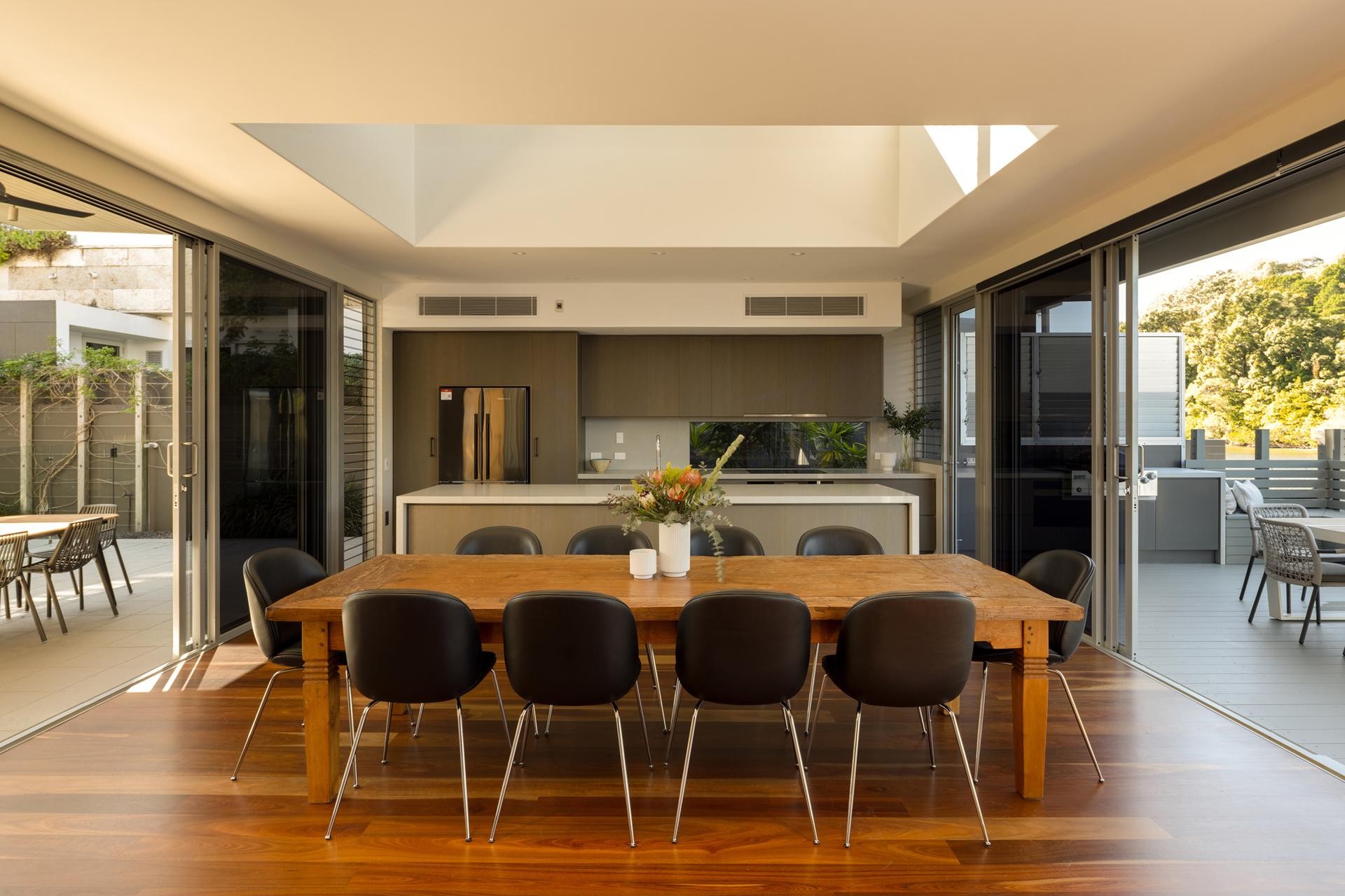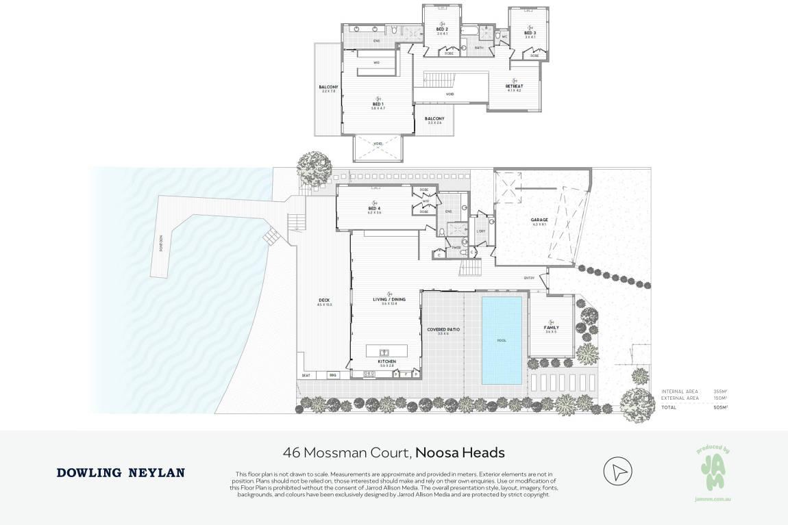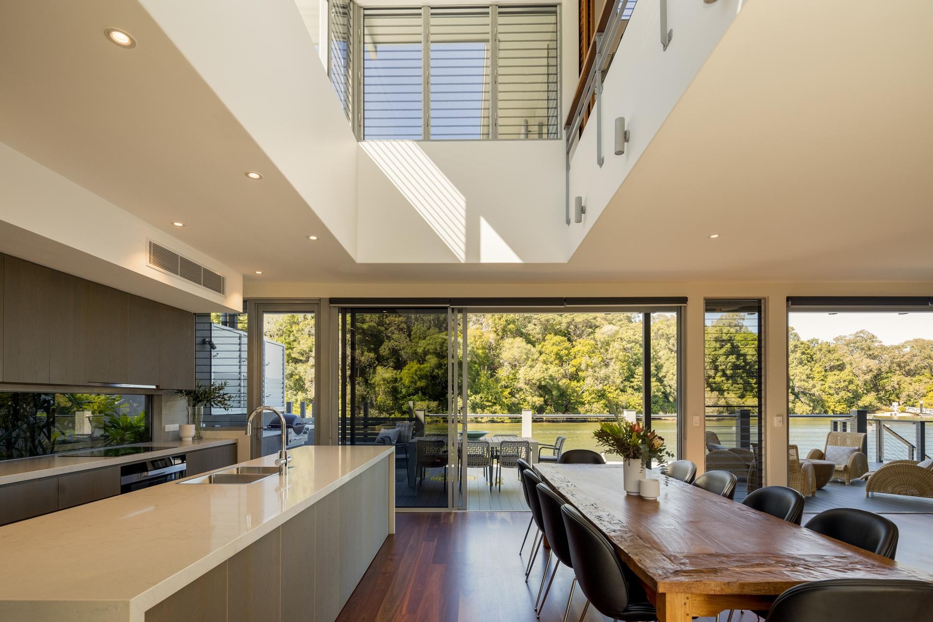 Designed to embrace the outdoors, the home is centered around a private internal pool, allowing water views from every major living space. Expansive open-plan interiors flow effortlessly to a generous waterfront entertaining deck, perfect for relaxing or hosting in style.