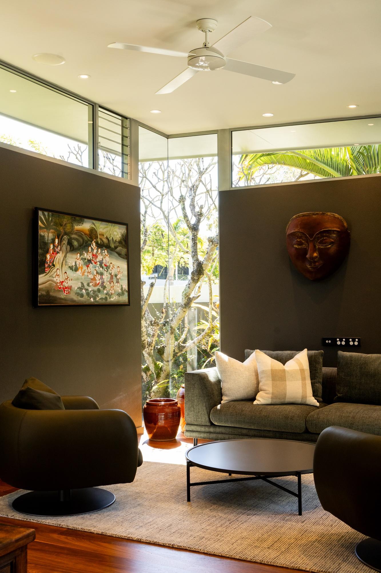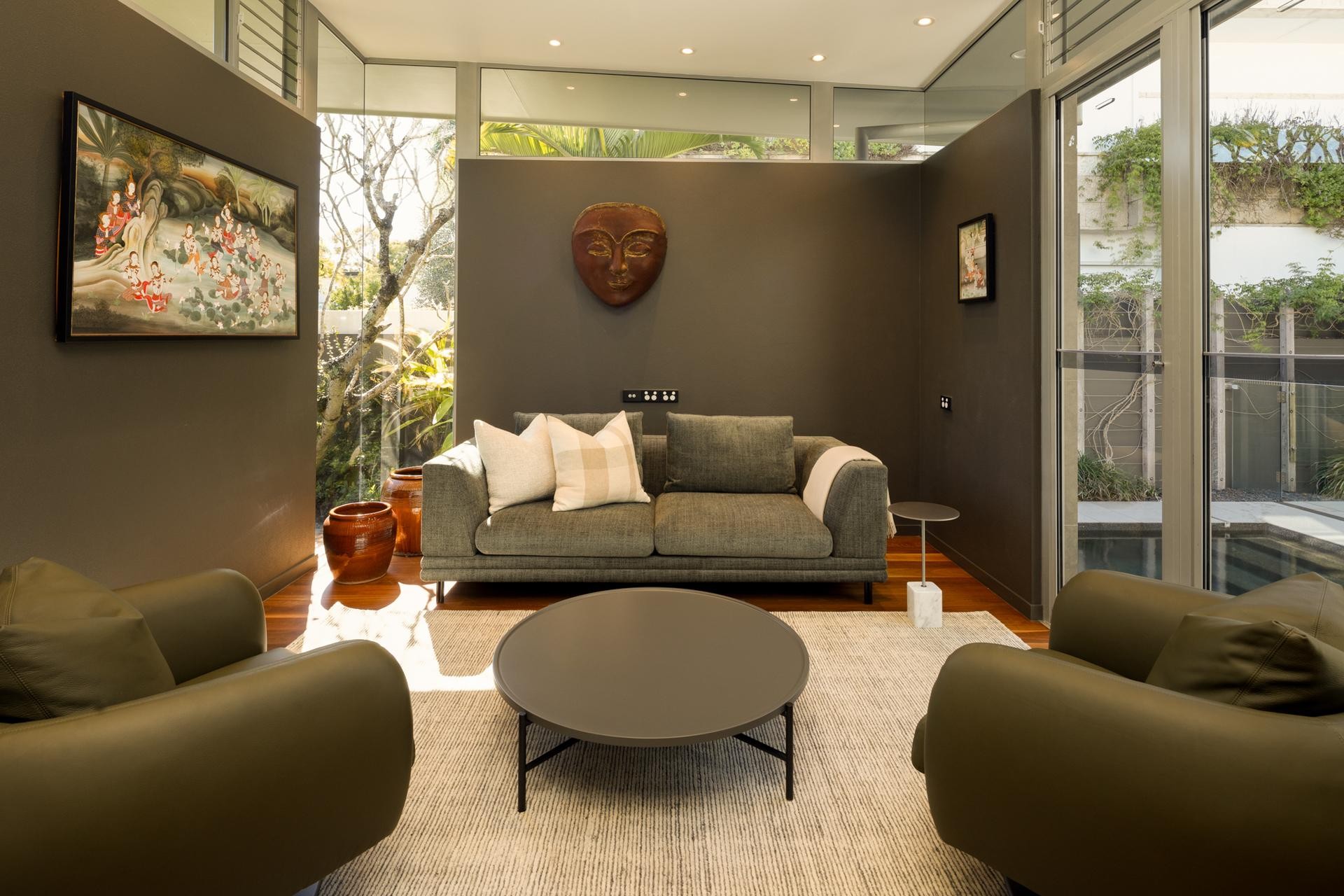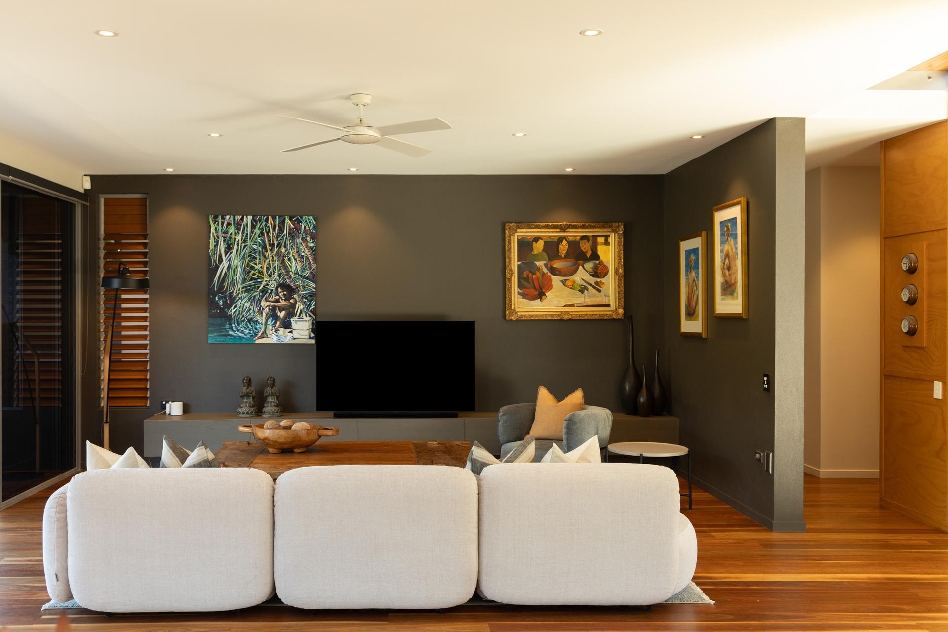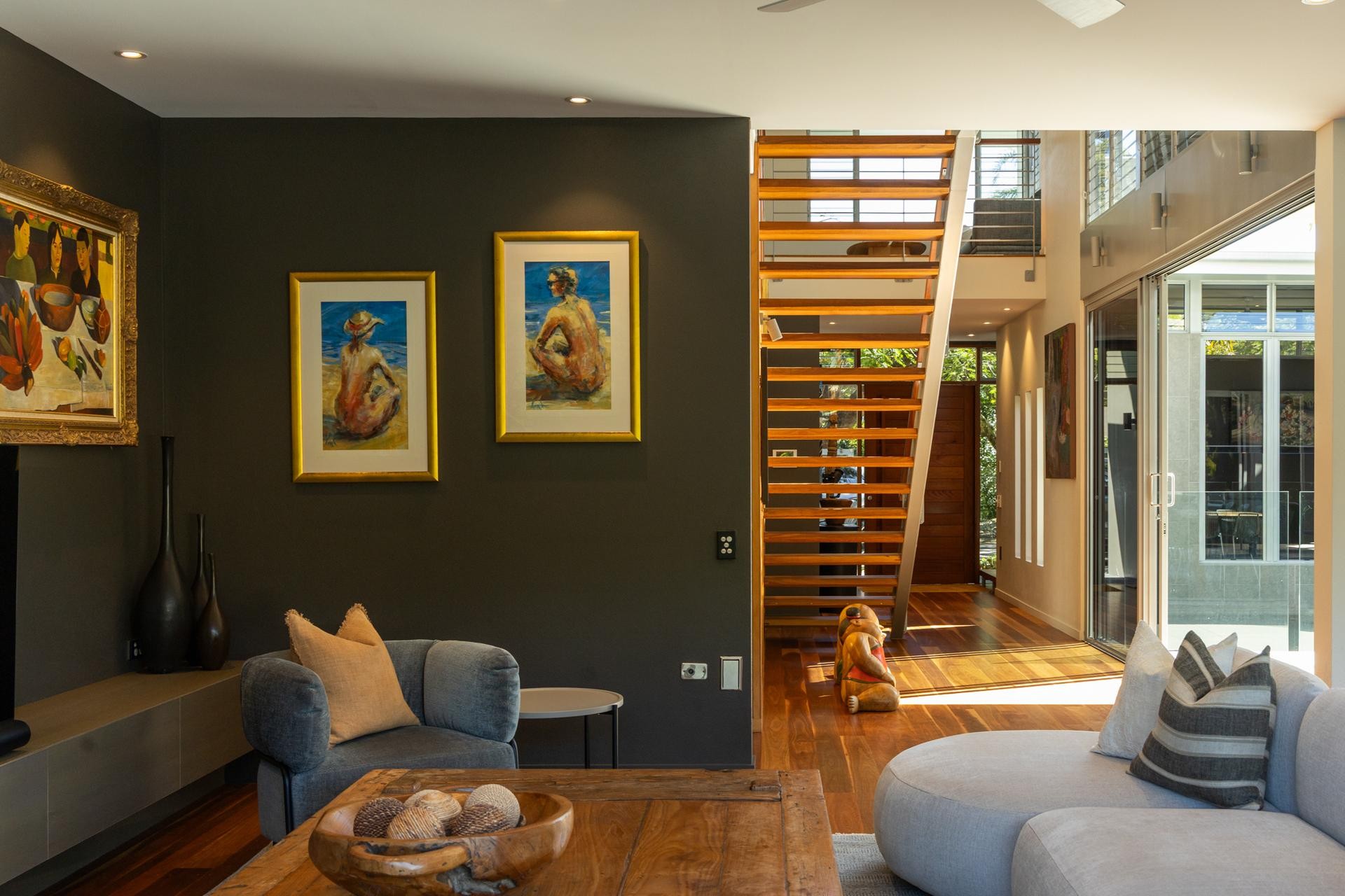 Also upstairs are two additional bedrooms that share a stylish bathroom and offer bright, generous accommodation for family or guests. A separate lounge or retreat provides an ideal space for visitors to relax in quiet solitude.