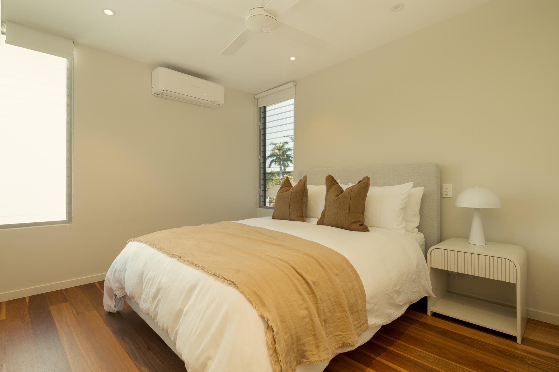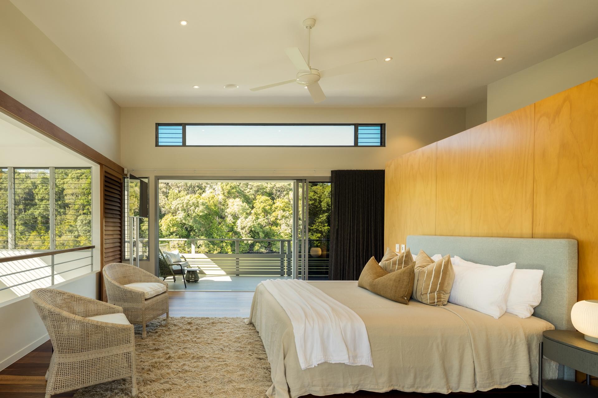 While luxurious in design, the home maintains a distinctly Queensland coastal feel. The upper-level master suite enjoys panoramic water views from a private deck, and features a spacious ensuite, walk-in robe, and a sun-drenched balcony overlooking the pool.