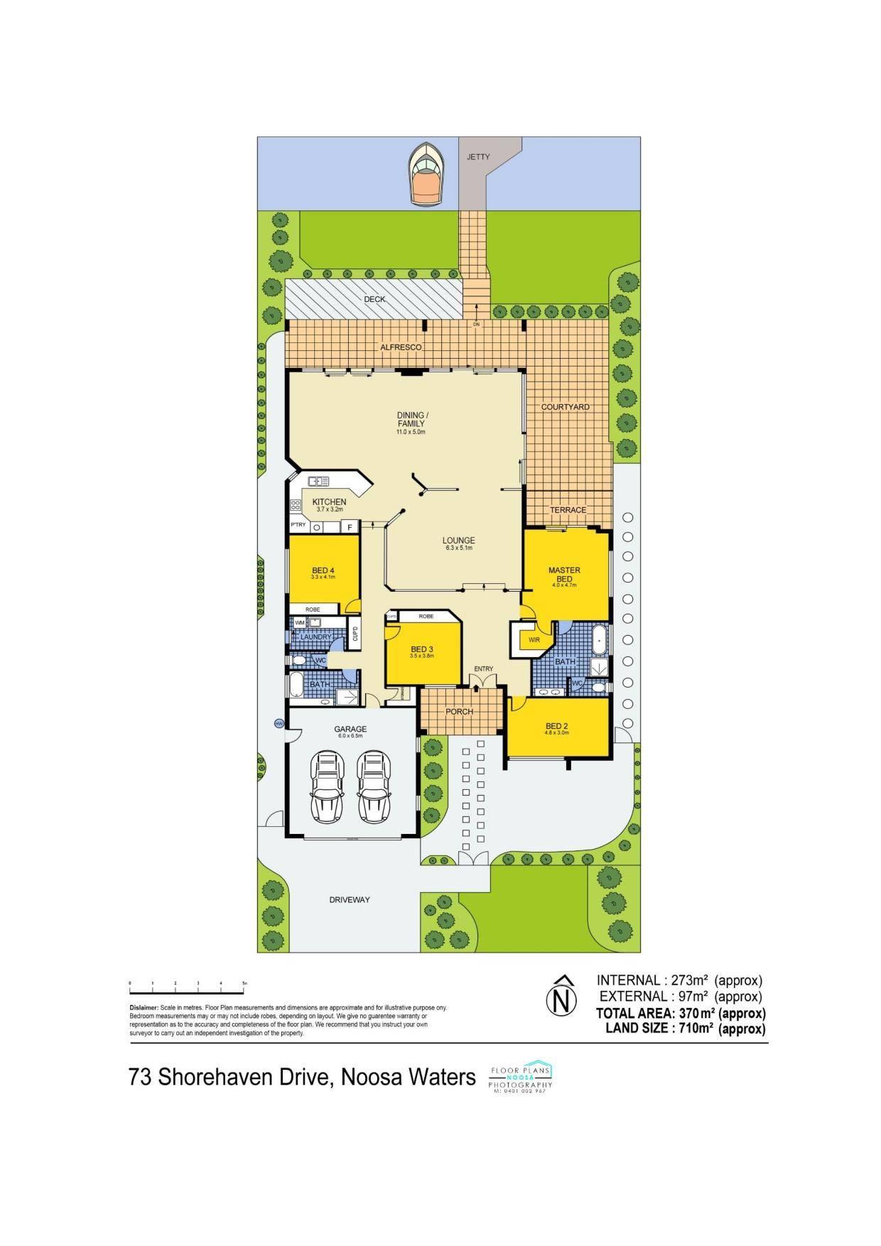 There is ample room for a pool. A Mediterranean style courtyard garden offers complete privacy and a secure space for a pet. Low maintenance gardens, allow you time to enjoy the beautiful Noosa River. The ideal floor plan provides ample guest accommodation in a separate wing, while the master suite enjoys water views and large ensuite complete with free standing bath.