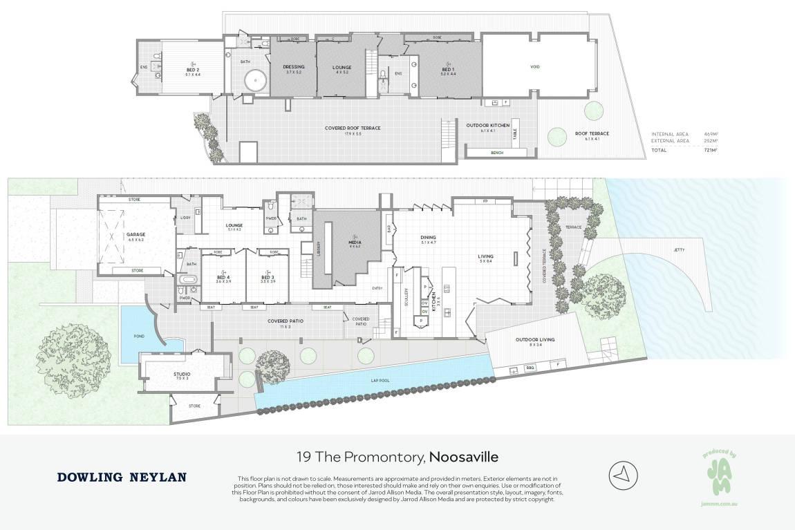 Set on nearly a quarter-acre of prime North facing land, with 721sqm under roof and 469sqm of internal living, the scale of the residence is generous yet never overwhelming-designed to balance expansive interiors with intimate outdoor moments. Indoor and outdoor living are effortlessly interwoven, honouring the rhythms of Queensland's subtropical climate.