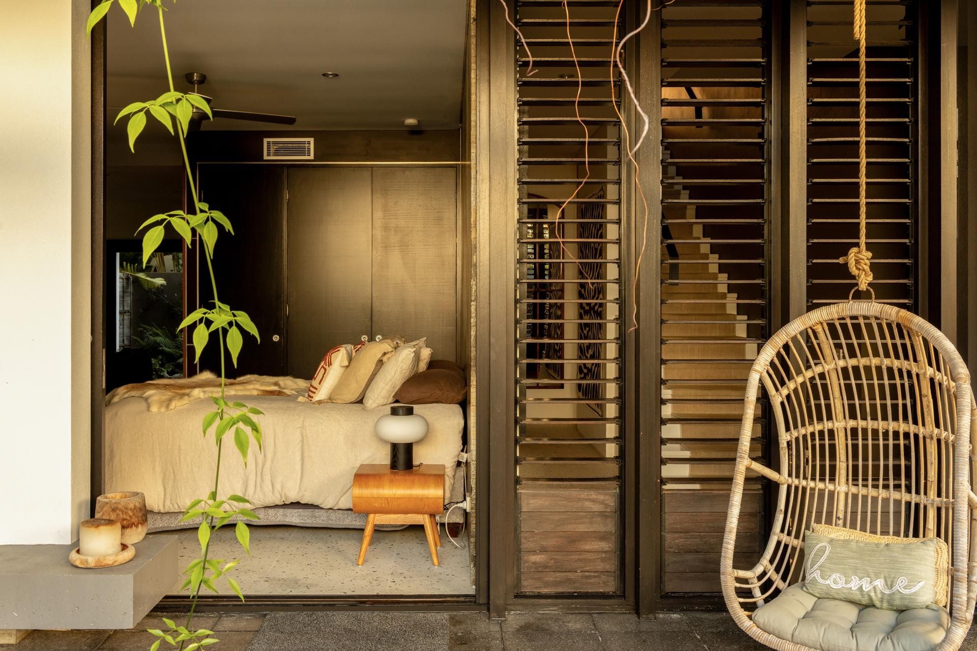 Upstairs, the master retreat spans the length of the home, elevated to capture soft light and water views. Floor-to-ceiling timber louvres provide control over light and privacy, while the suite flows to an expansive private terrace, dual his-and-hers ensuites, a central owner's lounge, and a lavish dressing room-creating a sanctuary of rare sophistication.