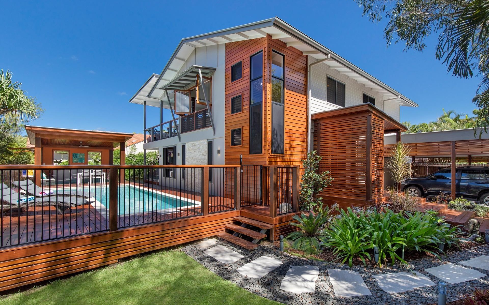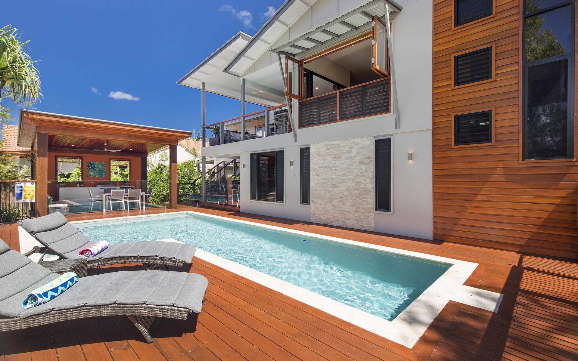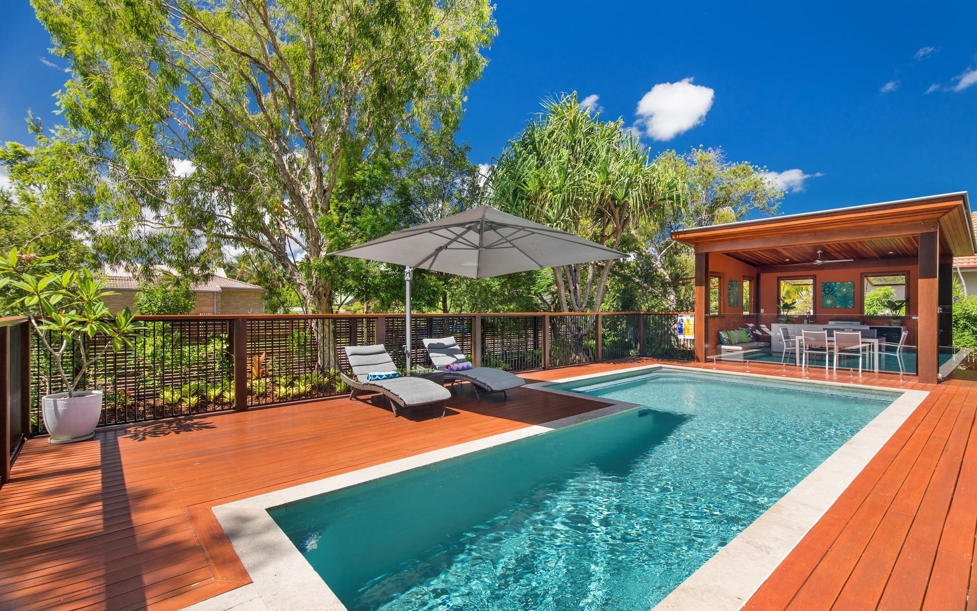 | Located seconds from the Noosa River with easy access to boat ramps and sandy beach entrances | Master bedroom includes walk in robe plus en-suite with free standing bath | Extensive use of feature timber throughout | In-ground pool with sunny north orientation | Pool side cabana with outdoor kitchen | Situated in a quiet cul-de-sac with ample off street parking and the safety of a no-through road | Corner site with access from both streets and fully fenced grounds | Carports with space for four vehicles including high bay for larger caravans or boats | Miele dishwasher | Electric and soft close cupboard doors | 40mm Essa stone benchtops | Brush Box timber flooring | Reverse cycle air-conditioning to living spaces and master bedroom | 1.2kw solar panels | Study/5th bedroom with external access | All bedrooms with built-in robes | Extensive use of louver windows for cross ventilation | Fully tiled bathrooms | Huge laundry with ample bench and storage space | Ducted Vacumaid system | Crimsafe screens and doors | Shed with workshop plus additional garden shed | Outstanding investment returns from permanent or holiday rentals