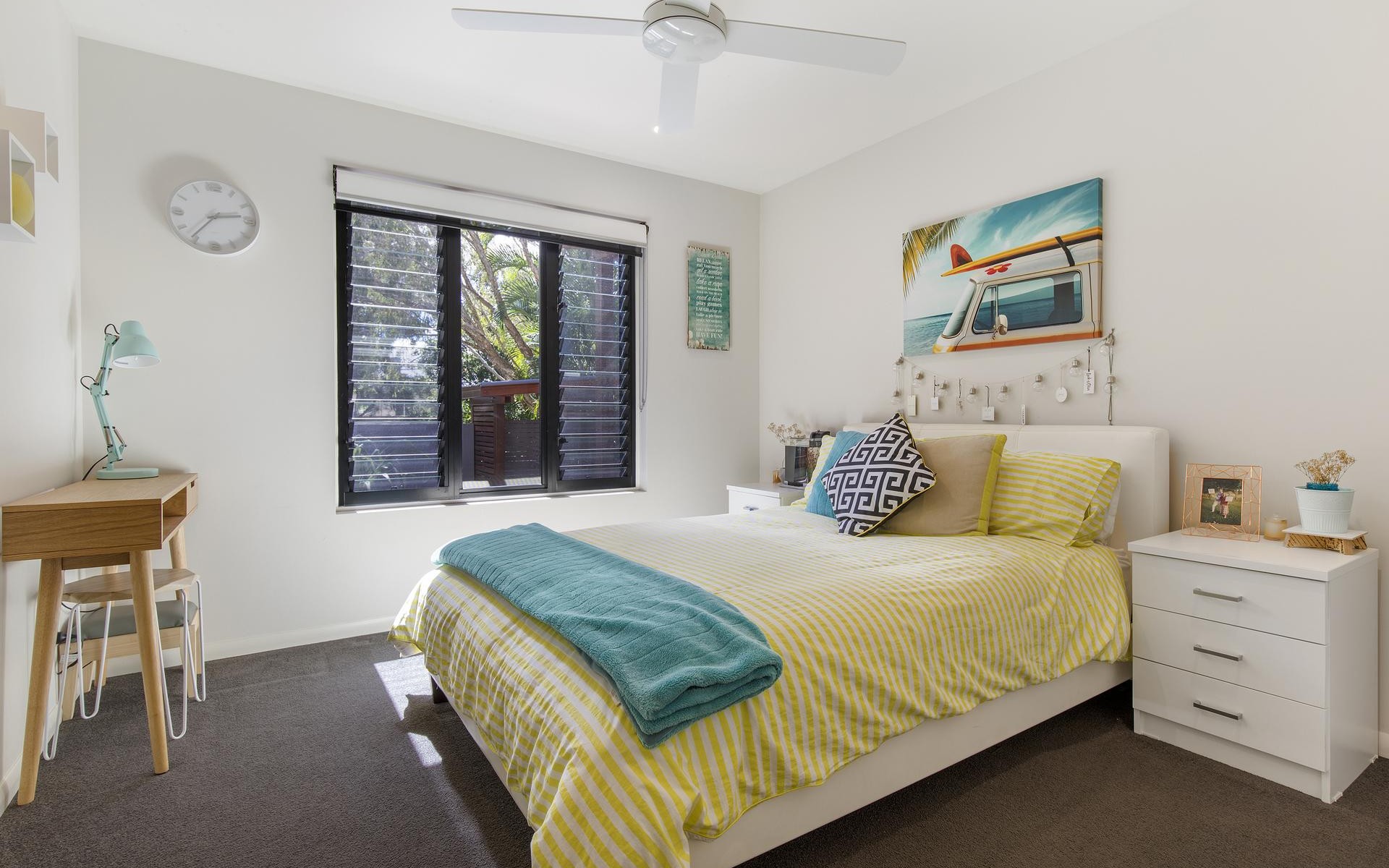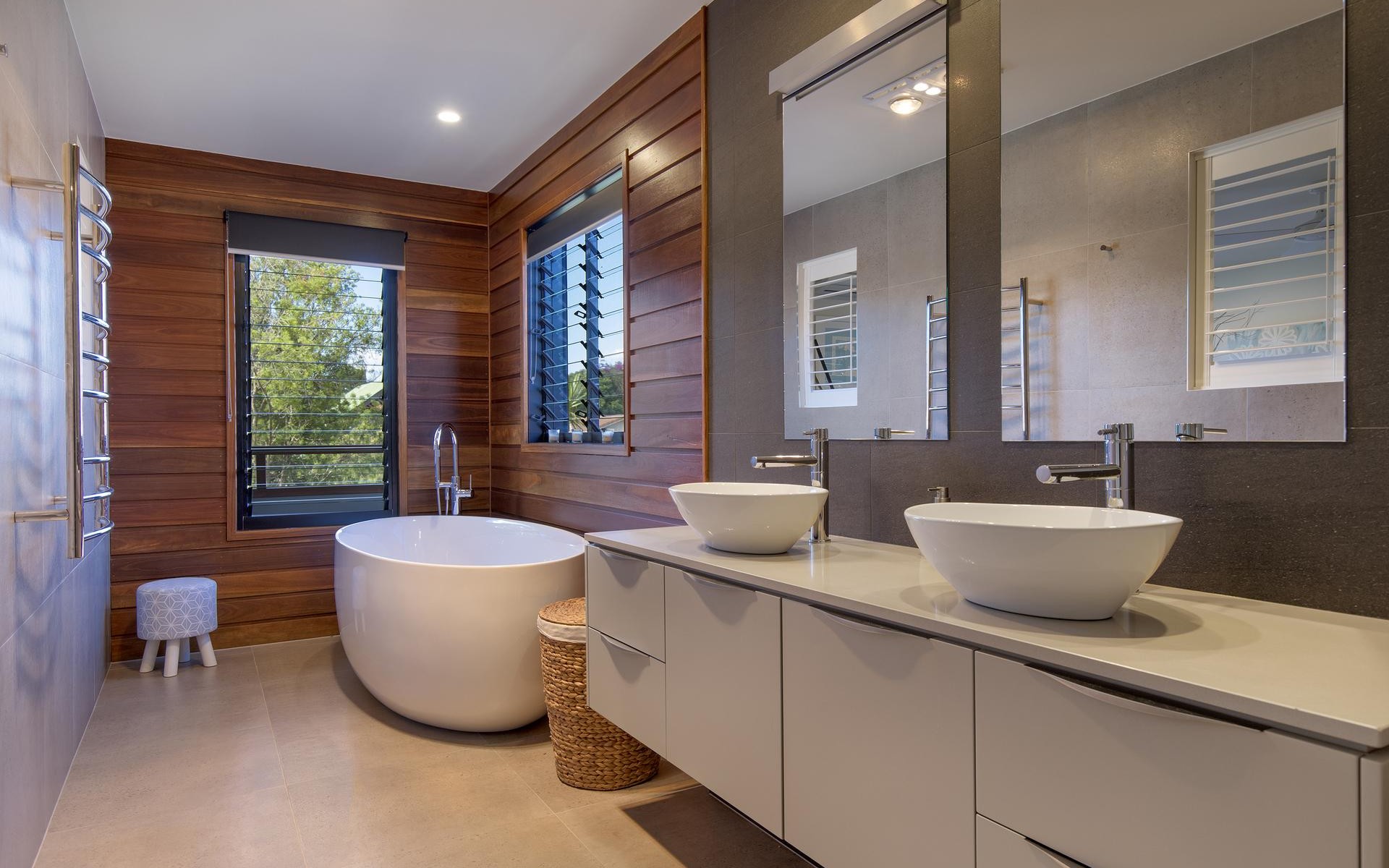Opening towards a private section of the balcony, the generous master suite features a walk in robe and an opulent en-suite. Spotted Gum walls surrounding the free-standing bath provide the perfect place to unwind, while an oversized dual shower ads to the luxurious experience.