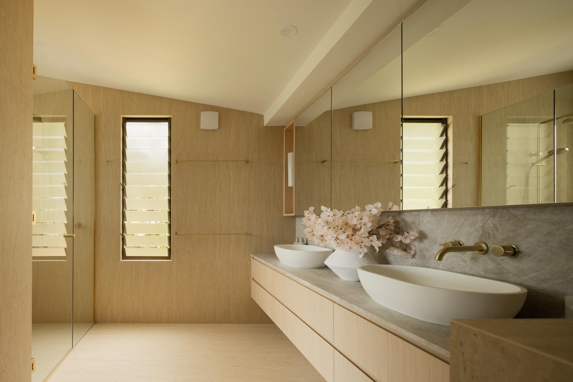 This is a home designed to be experienced slowly and thoughtfully. Where early light rises over the treetops and moves softly over travertine and French oak floors. Where breeze and birdsong enter through open doors, and every material, brass, marble, sandstone and timber, has been curated not for impact, but for longevity.